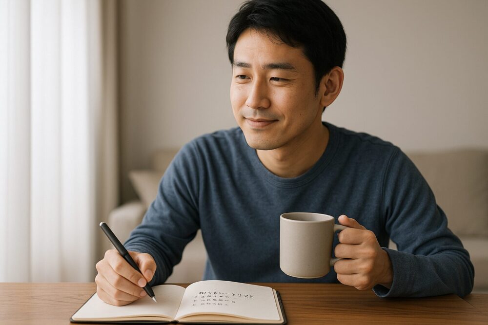 - 朝のコーヒータイムや帰宅後の数分だけ、目を閉じて今の感覚に集中してみる